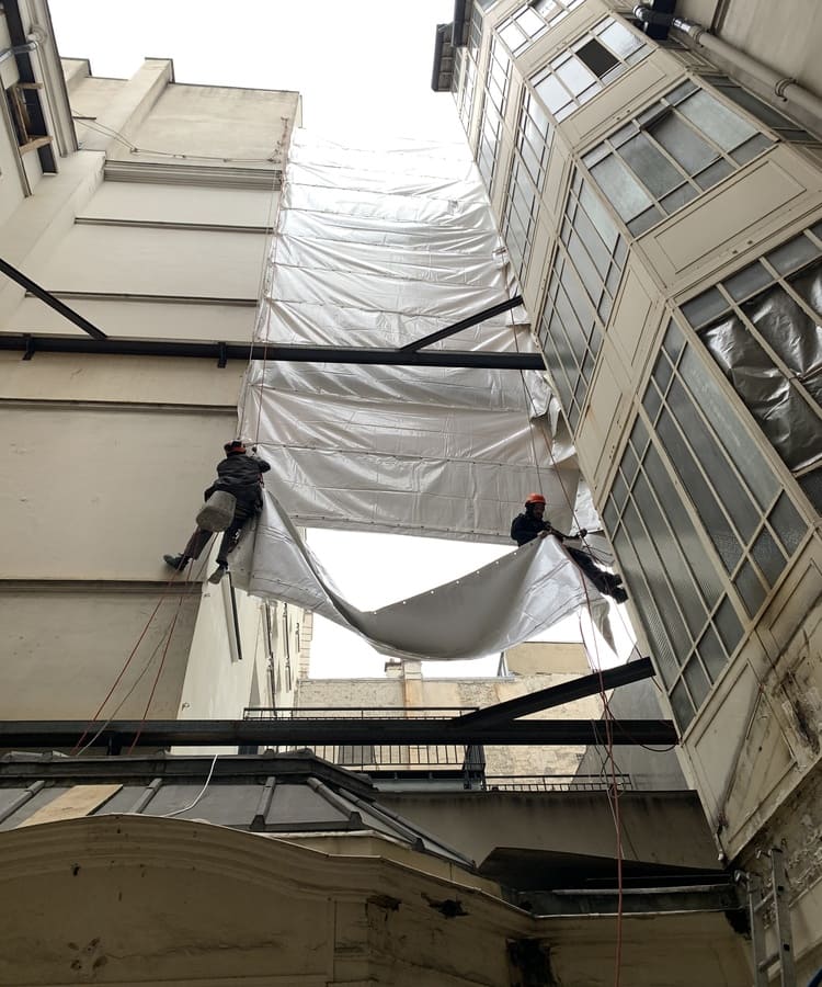 Nos solutions de pose de filets de sécurité et de pics anti-pigeon s’effectuent sans échaffaudage, en hauteur.