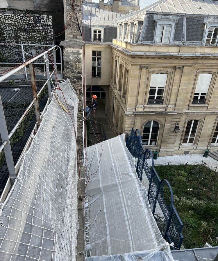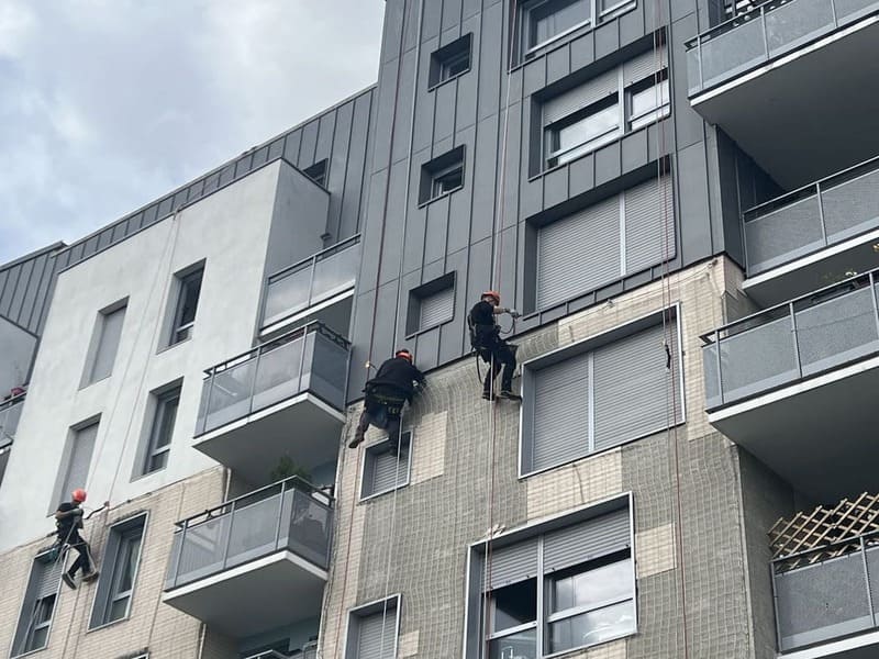 Pose de Filets de Sécurité Anti-Bruit et Anti-Chute sur Immeuble.